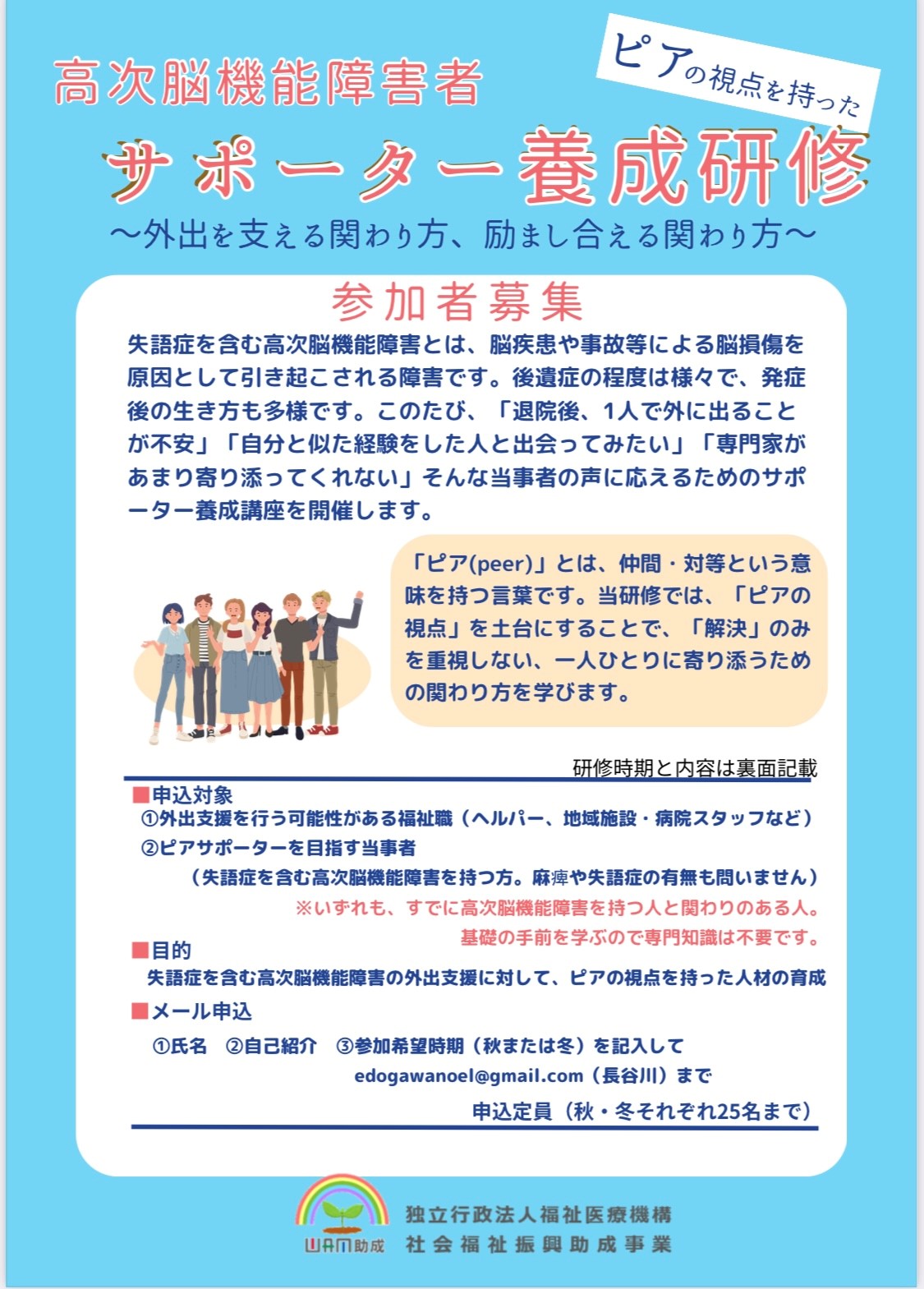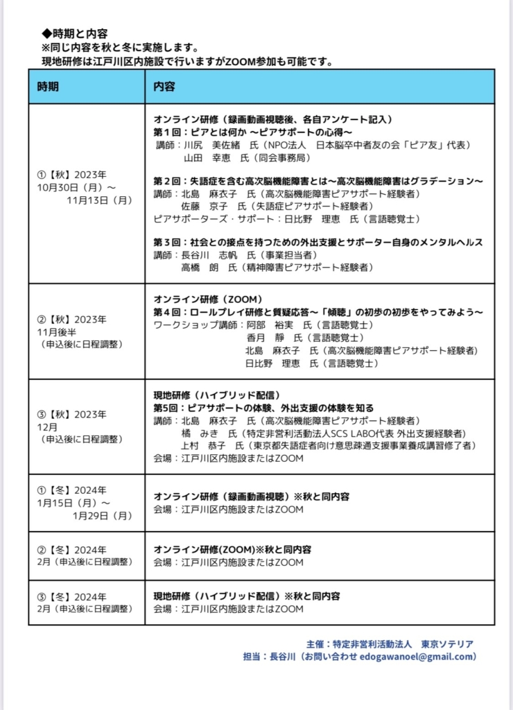 高次脳機能障害ピアサポーター養成研修についてのチラシを掲載します🌈 2023 12/19 お知らせ 2023.12.19 2023.12.19 お知らせ よかったらシェアしてね! URL Copied! URL Copied! 「高次脳機能障害者ピアの視点を持ったピアサポーター養成研修~外出を支える関わり方、励まし合える関わり方~」の最終回現地研修が行われました🌈 支援者の方🌈同じ仲間へ🌈 この記事を書いた人 北島 関連記事 繋がりを大切に🌈 2023.05.16 広くみんなの意見を聞かせてください🌈 2023.04.19 4月のオンラインサークルのご案内🌈 2025.04.08 11月21日(日)交流会を開催します! 2021.10.13 4/18高次脳機能障害・失語症をもつ親のいる子どもたちの交流会を開催します🌈 2025.04.09 今の子育て支援制度や仕組みでは全ての親子のサポートは難しい 2025.08.28 闘病記フェスティバル新チラシ🌈 2025.03.13 徳島すだちの会定例会 2022.10.19 コメント コメントする コメントをキャンセルコメント ※ 名前 ※ メール ※ サイト 次回のコメントで使用するためブラウザーに自分の名前、メールアドレス、サイトを保存する。