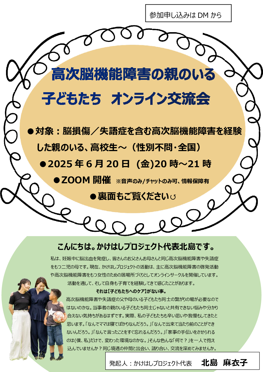 お父さんお母さんが脳損傷を経験したことによって親だけでなく子どもたちも生活に制限がかかる場合があります。