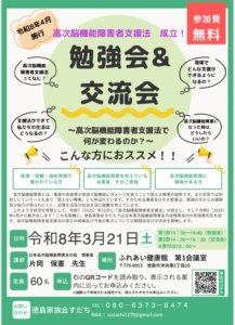 3月21日㈯徳島高次脳機能障害家族会すだち主催の勉強会と交流会が開催されました。
