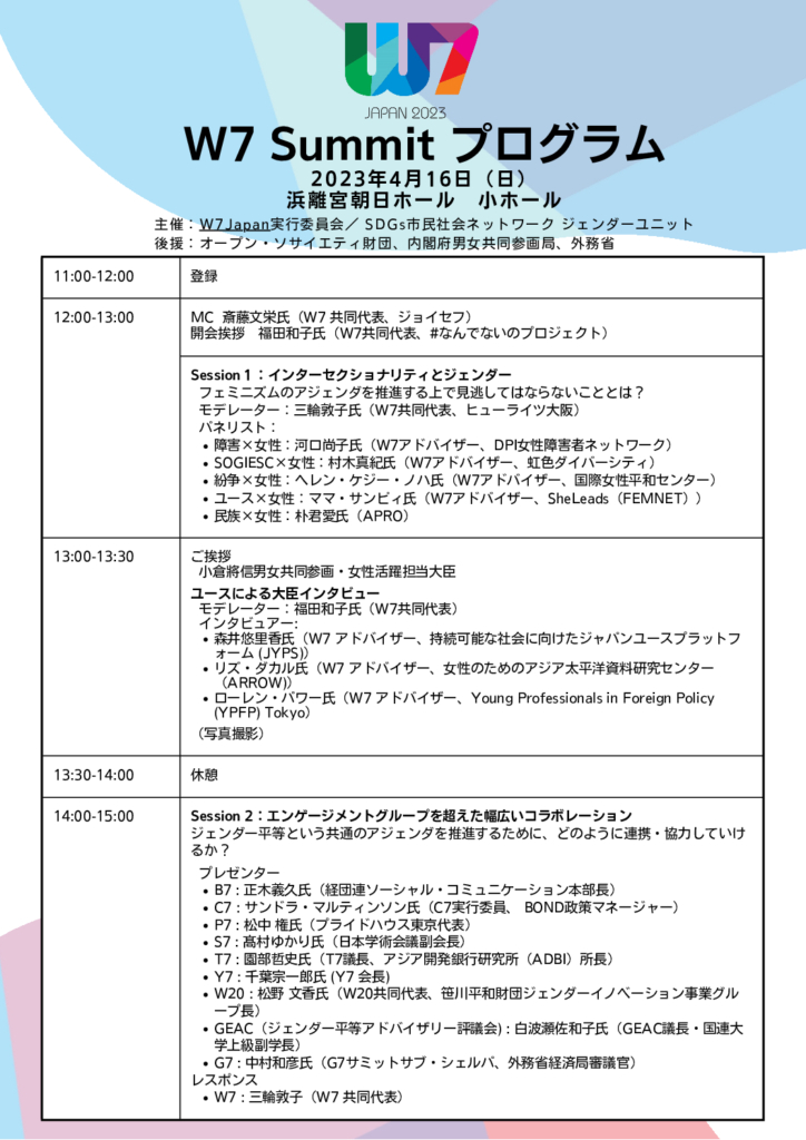 昨日は、午後からW7をオンラインで視聴しました。障がい×女性について、河口尚子氏(W7アドバイザー、DPI女性障害者ネットワーク)のスピーチを聞きました。障害をもつ女性にちゃんとスポットライトを当てた支援が必要であることを強く訴える内容でし... -