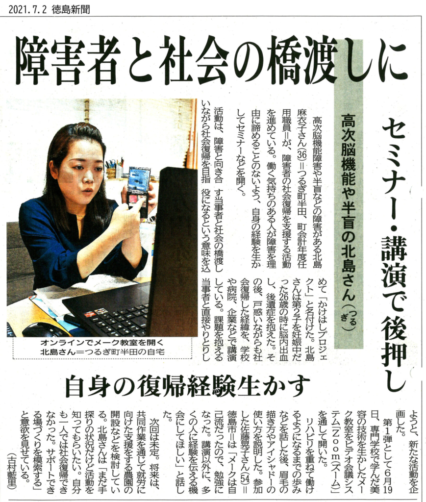 オンラインメイクレッスン風景が徳島新聞に掲載されました!