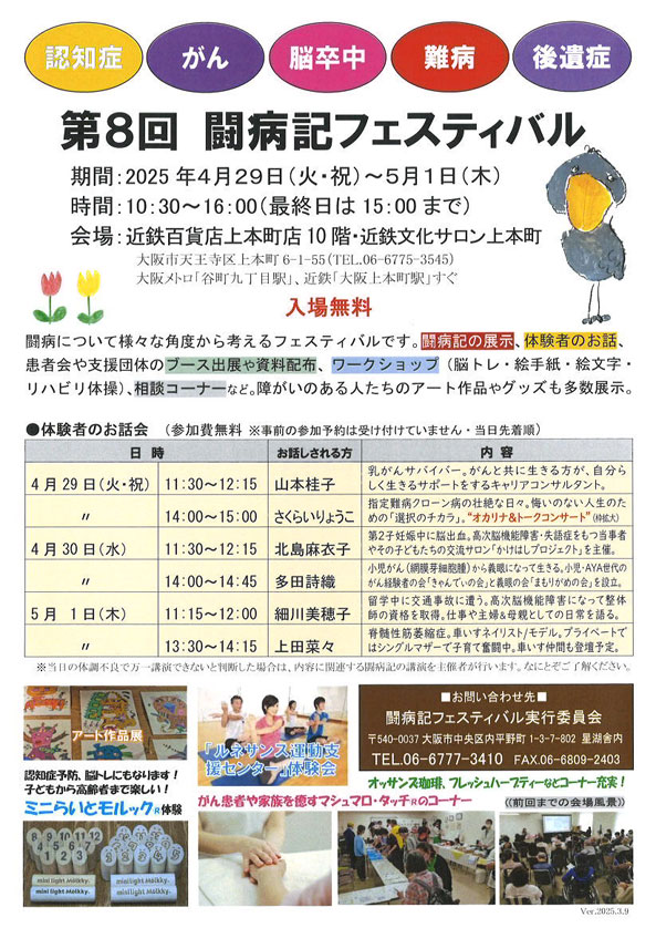 おはようございます。かけはしプロジェクト代表北島です。今年も【闘病記フェスティバル】が三日間にわたり開催されます。体験者のお話を聴くだけでなく、様々なブースが設けられていて、内容盛りだくさんです🌈私は4月30日(水)11時~の部でお話さ... -